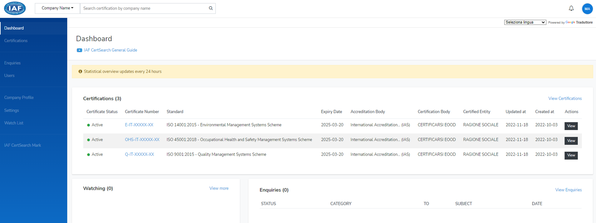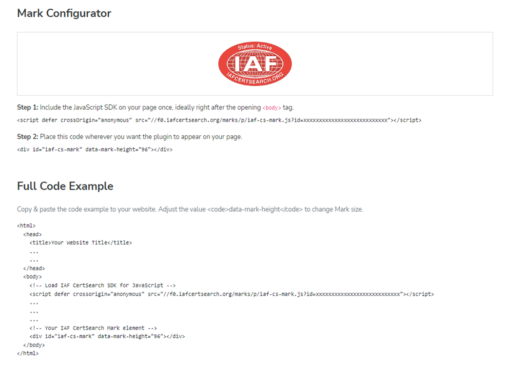 Le aziende che hanno una certificazione accreditata attiva nel database IAF CertSearch avranno la possibilità di includere il marchio IAFCertSearch sul proprio sito web.